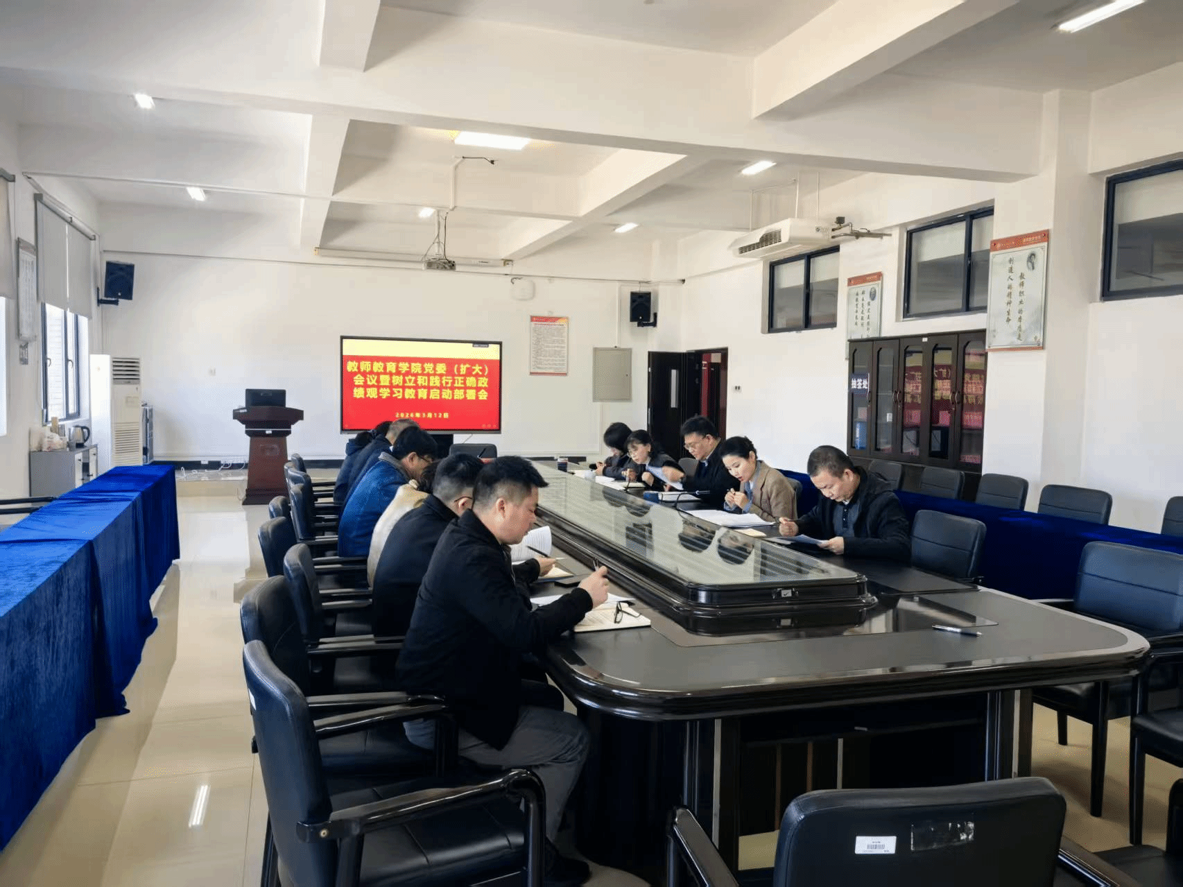 3月12日下午,教师教育学院召开党委(扩大)会议,专题部署并启动树立和践行正确政绩观学习教育工作。学院党委班子全体成员、各党支部书记及全体科级干部参加会议,学院正处级组织员陈晨主持会议。
