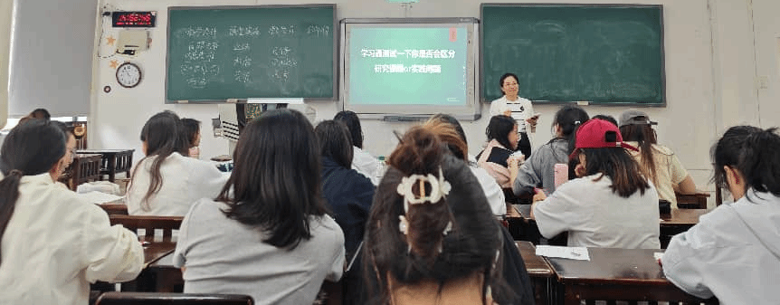 本次活动围绕“聚焦课堂互动设计,赋能教师专业发展”为主题,通过“课堂实践—即时研讨—反思优化”等闭环,探索师范专业课程中“教学实操”与“教育研究”的融合路径。课程通过“案例辨析+小组讨论+情境模拟”等环节,将“教师专业发展”理论转化为可操作的教学实践。课堂上,学生从“被动接受”转向“主动建构”,体现了“做中学、研中悟”的师范课程特色。随后,教研团队开展“三维教研”,结合学生课堂表现,分析学生对“实践问题”的场景感知强,构建“理论—实践—研究”的课程理念。